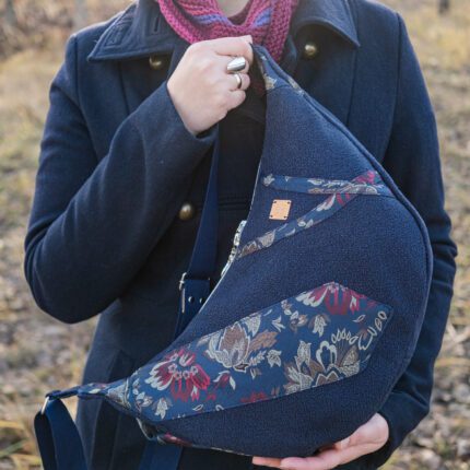 Torebka półokrągła z krawatem – granatowa, duża – upcykling