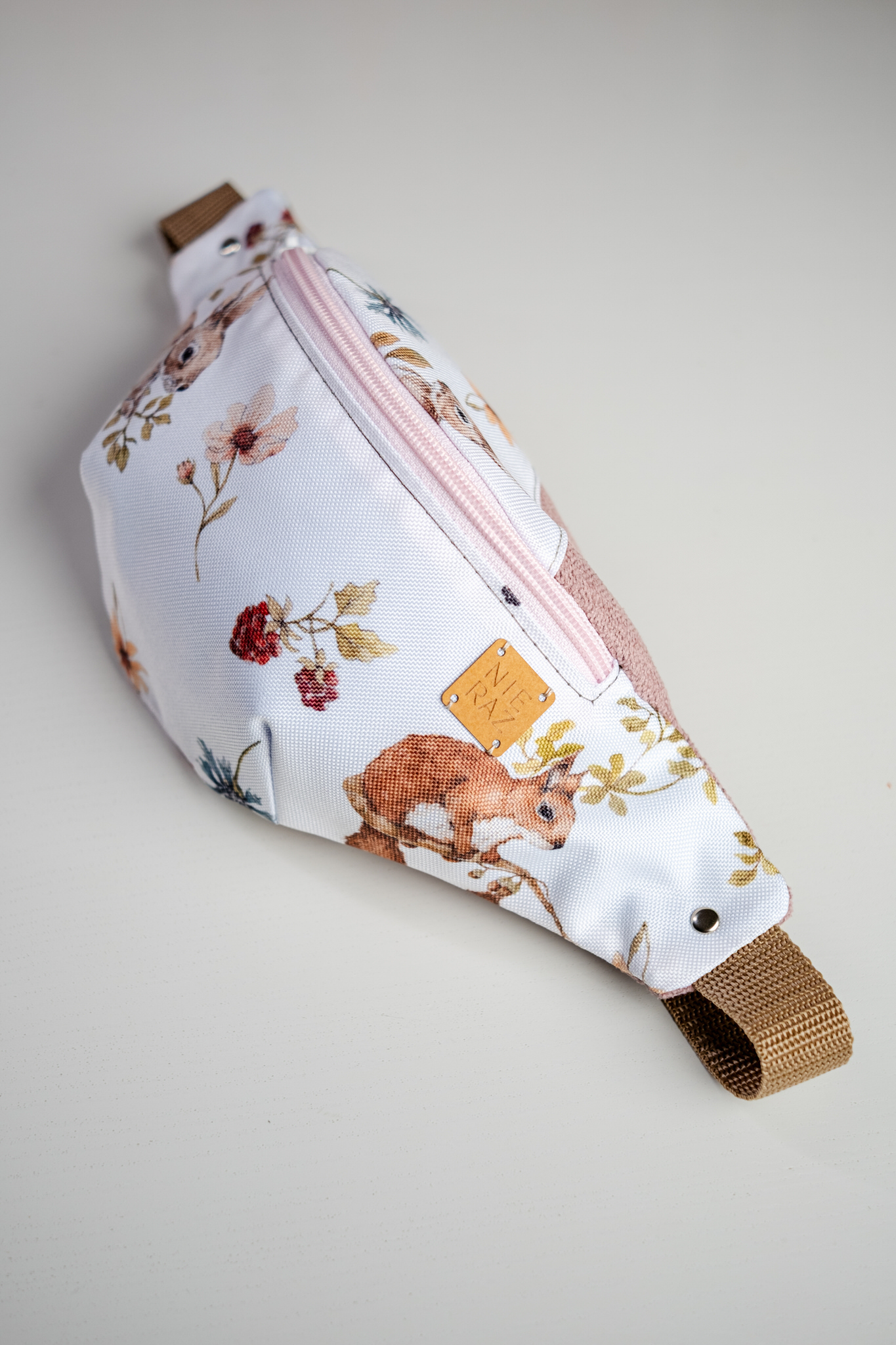 Nerka dziecięca leśne zwierzęta na bieli – saszetka z upcyklingu