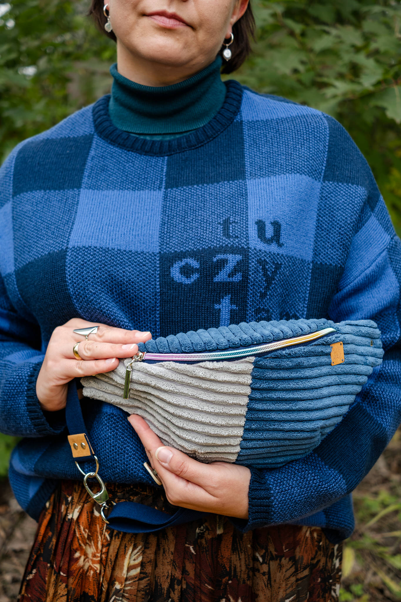 Nerka sztruksowa niebiesko-szara z upcyklingu
