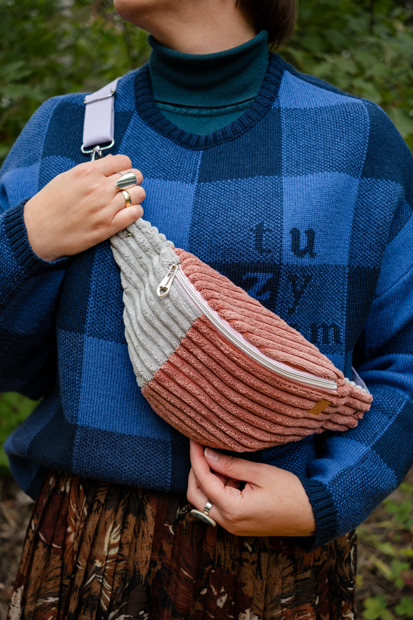 Nerka sztruksowa różowo-szara z upcyklingu